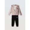 Σετ τριών τεμαχίων. αποτελείται από ζακέτα με κουκούλα σχέδιο unicorn, μπλούζα με στάμπα και φόρμα.