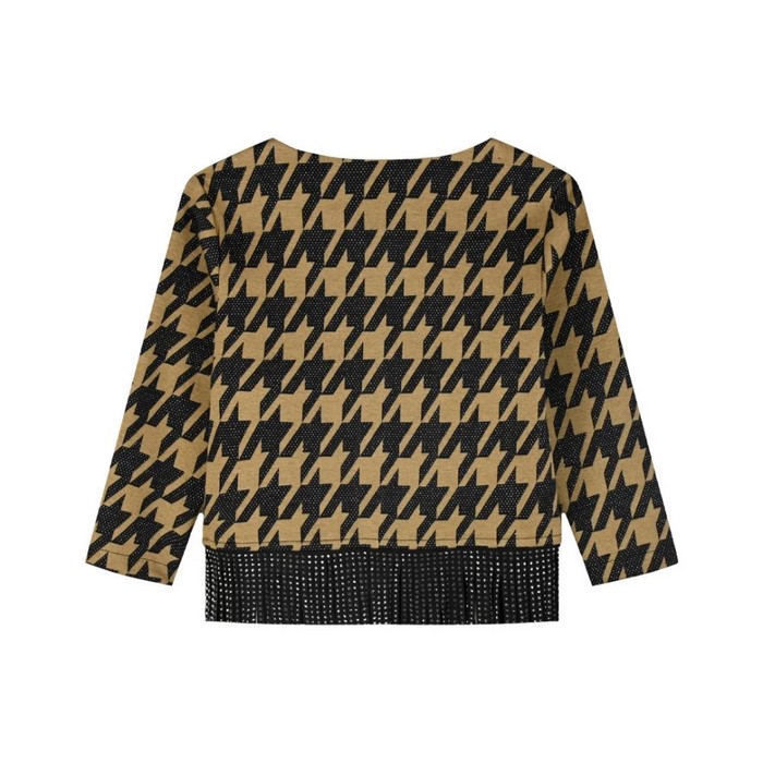 Πιε ντε πουλ ζακέτα με ίνες λούρεξ και κρόσια για κορίτσι. Με αυτές τις ιδιαίτερες λεπτομέρειες θα απογειώσετε το στυλ της μικρής σας.