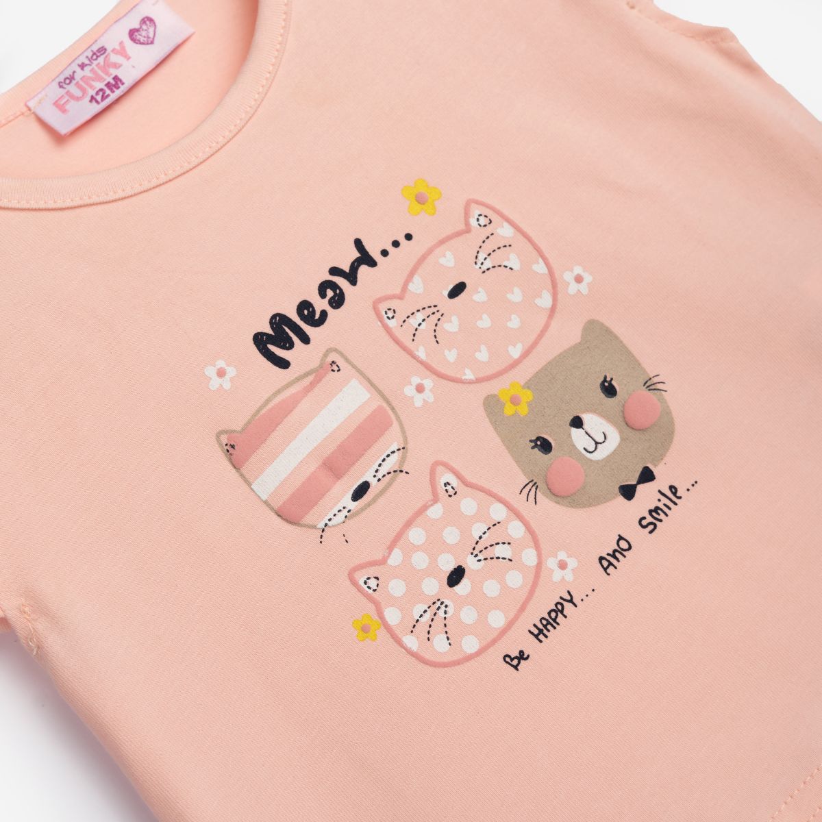 Βρεφικό σετ μπλούζα με σχέδιο γατάκια και κουμπάκια στον ώμο και κολάν ποδηλατικό πουά.