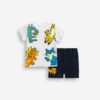 Βρεφικό σετ 2 τεμαχίων φορμάκια με κουμπάκια στο κάτω μέρος. Σχέδιο ριγέ σιέλ και ζωάκια.