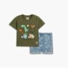 Βρέφικο σετ φούτερ τζιν, άνετο και μαλακό, για αγόρι σε χρώμα χακί/μπλε τζιν και σχέδια δεινόσαυρους.