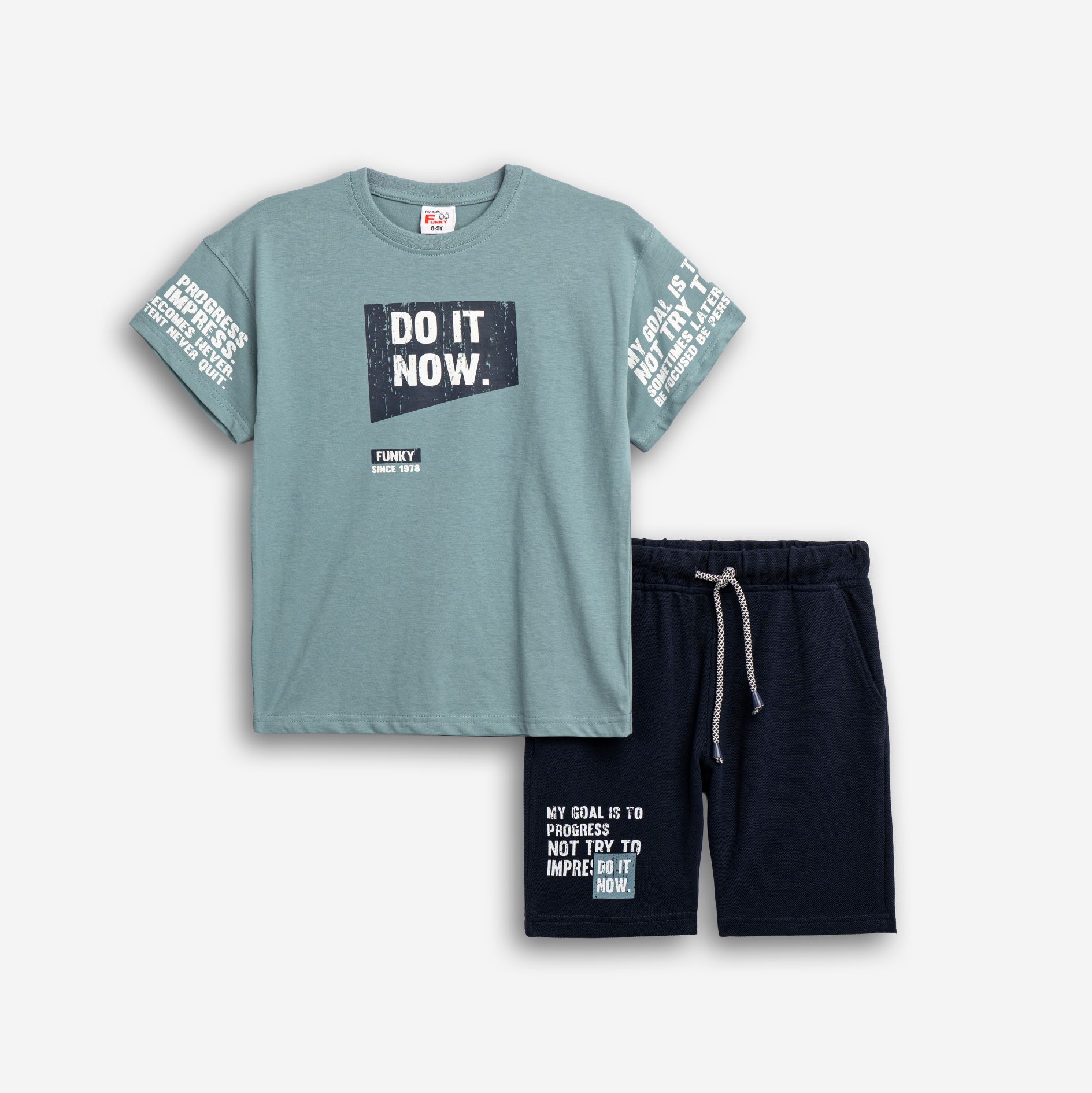 Σετ μπλούζα με στάμπες και βερμούδα πικέ με στάμπες, τσέπες, λάστιχο και κορδόνι στη μέση.