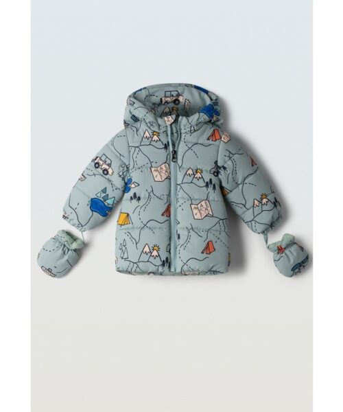 Βρεφικό σετ 3 τμχ. Αποτελείται από ανοιξιάτικο αντιανεμικό τζάκετ με κουκούλα και σχέδιο εσωτερικά, μπλούζα με στάμπα και ελαστικό τζην παντελόνι cargo.