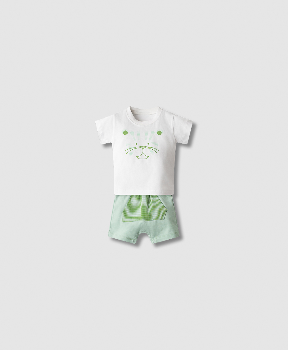 Βρεφικό σετ μπλούζα με σχέδιο και σορτς με ιδιαίτερο σχέδιο τσέπης.