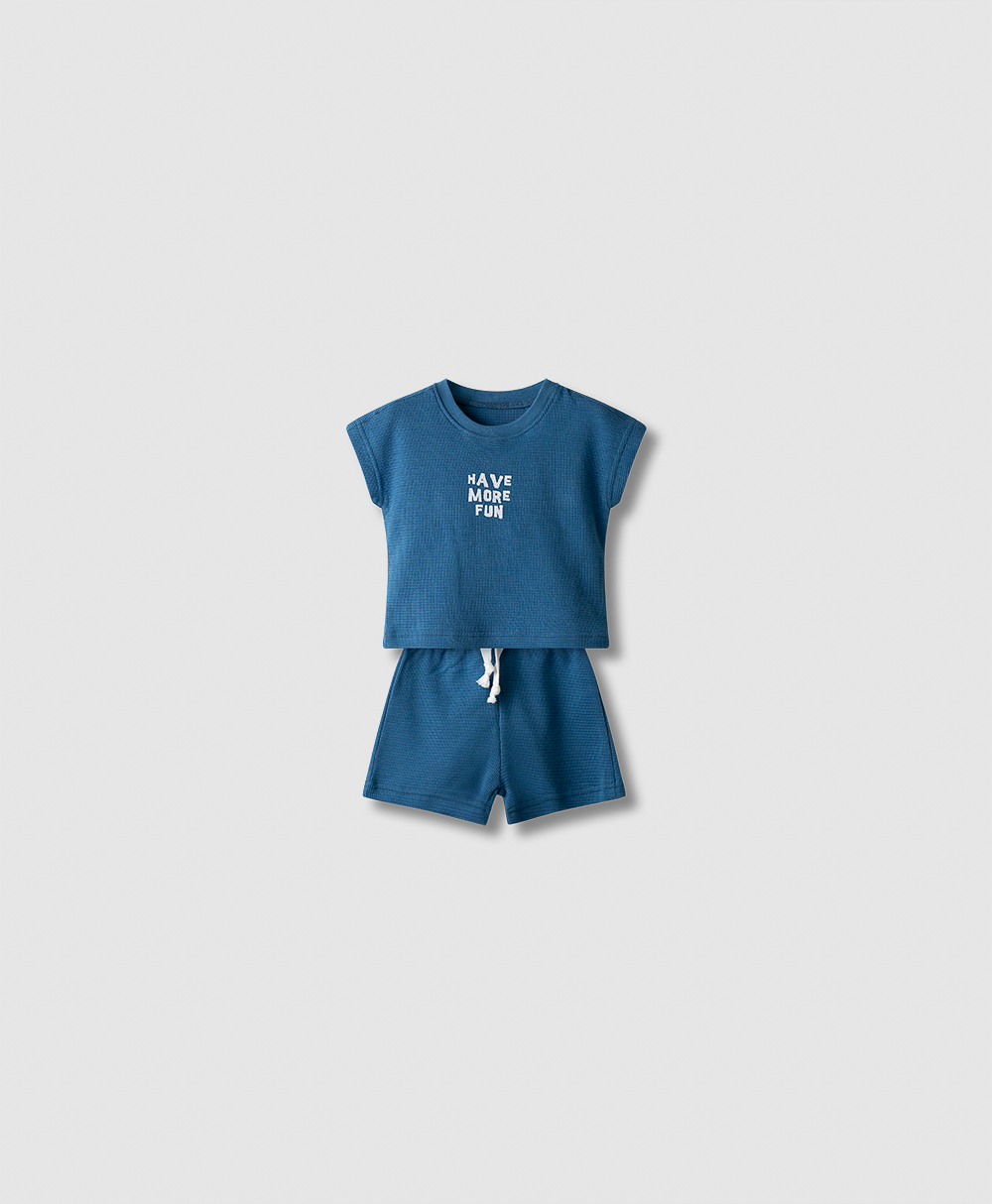 Βρεφικό σετ πικέ ελαστικό με μπλούζα και σορτς.