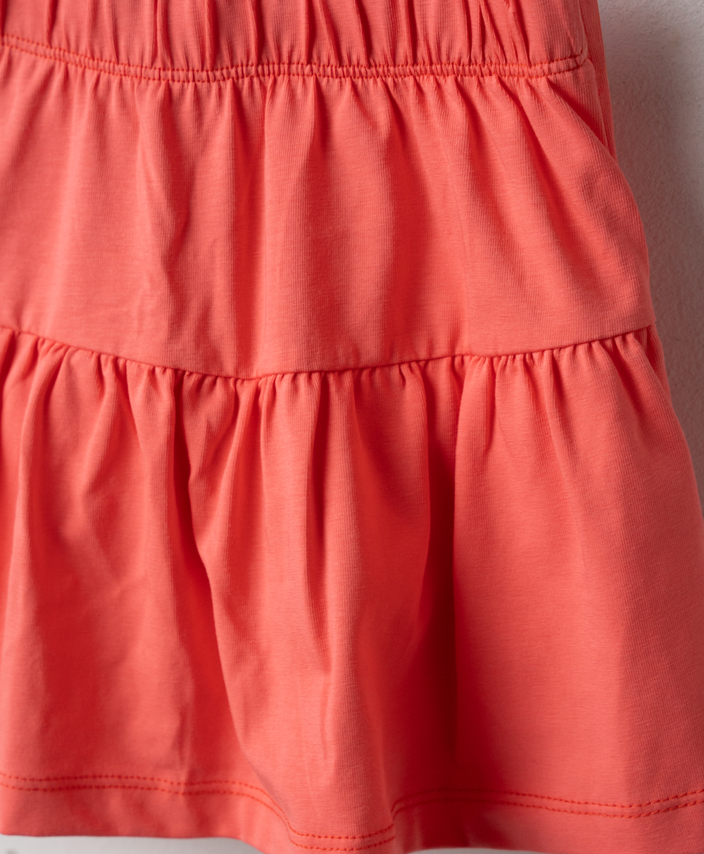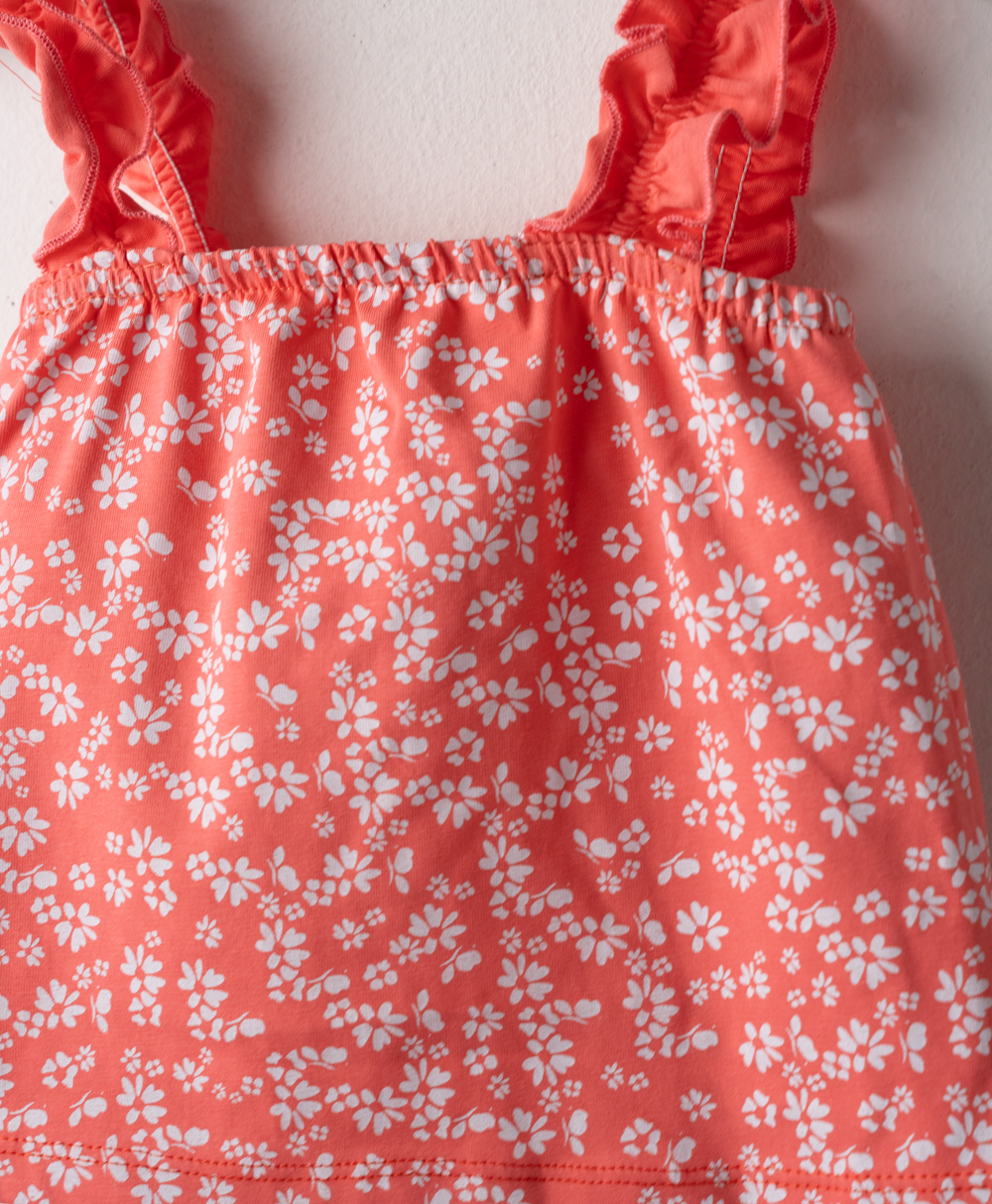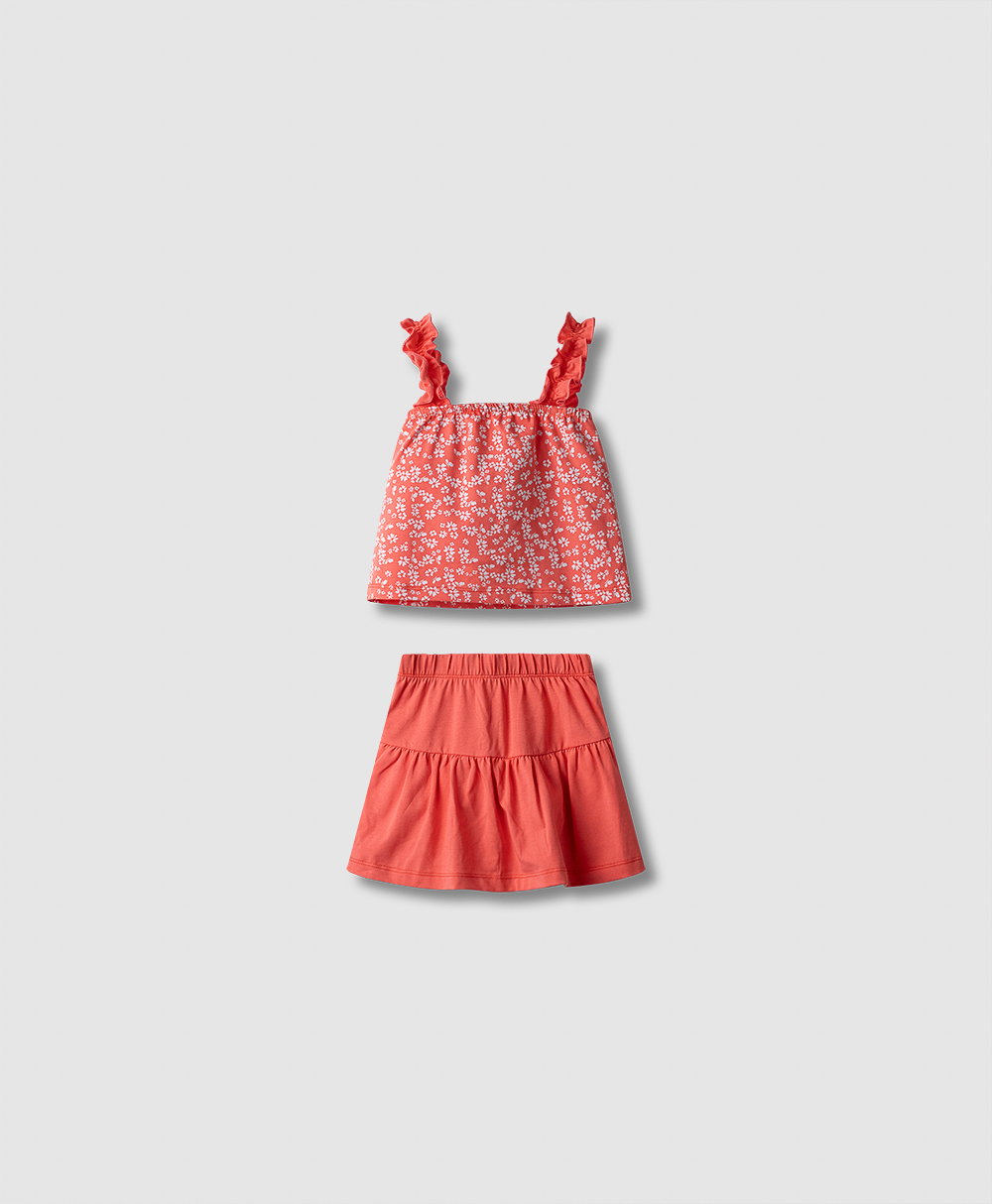 Σετ μπλούζα με λουλουδάκια και τιράντες και skort, όψη φούστας μπροστά και σορτς πίσω.