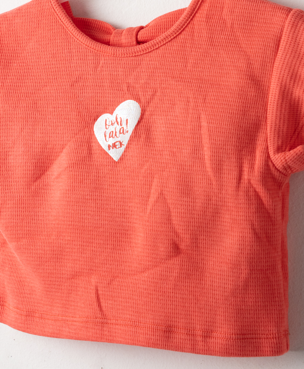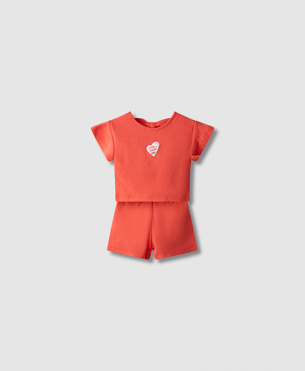 Σετ πικέ με ανάγλυφη υφή, ελαστικό. Μπλούζα με σχέδιο στην πλάτη και σορτς.