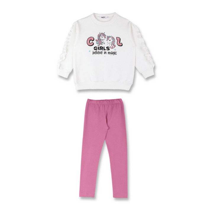 Σετ φούτερ με ιδιαίτερο σχέδιο στα μανίκια και παντελόνι-κολάν για κορίτσι. Θα γίνει η αγαπημένη της επιλογή.