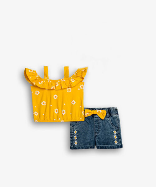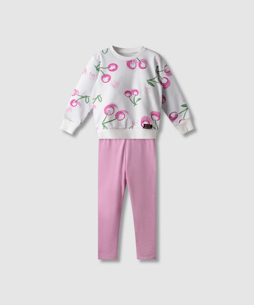 Σετ μπλούζα σε άνετη γραμμή με στάμπα και σορτς με λάστιχο και διακοσμητικό κορδόνι.