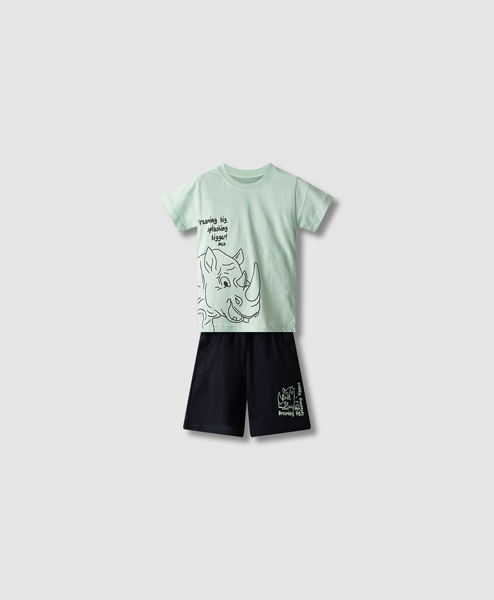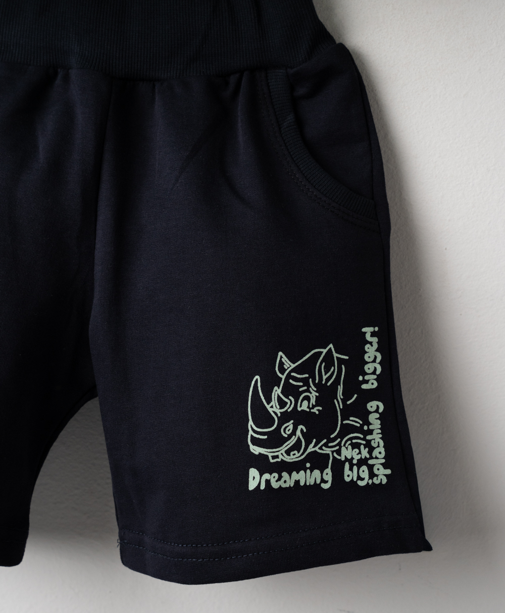 Σετ σχέδιο ρινόκερος. Μπλούζα και σορτς με στάμπα.